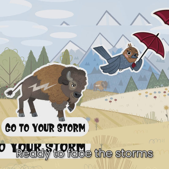 Celebrate the heartwarming story of friendship, courage, and resilience with this special set of stickers inspired by Duke’s Storm, a beautiful tale about a brave buffalo named Duke and his loyal bird friend Tootsie. These stickers feature Duke and Tootsie, offering a visual reminder of the power of optimism and support in overcoming life's challenges.